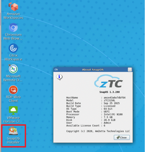 - Verify that you see the version of SnapOS you’ve installed underneath the zTC icon.